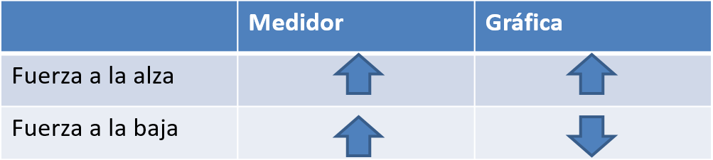En la siguiente imagen se resume la interpretación de nuestro medidor de fuerza ante cada movimiento en la gráfica del índice: