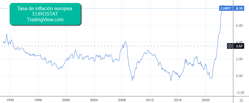 Y si hablamos de la zona europea, la inflación está el máximo histórico total, nunca antes había estado tan alta, nunca antes la vida había sido tan cara en Europa, nunca antes los europeos vieron como compraban cada vez menos cosas con sus billetes de euro.