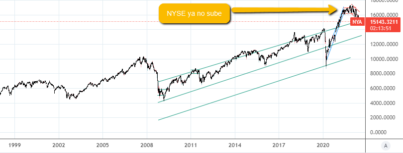 A finales de Marzo explicábamos que significa que la Reserva Federal de USA FED empiece a subir las tasas de interés, y lo que significa para tus inversiones y vida diaria (puedes ver la explicación haciendo clic aquí). En esa publicación avisábamos que las posibilidades de que las gráficas de las empresas del mercado de USA cayeran en conjunto eran altas.