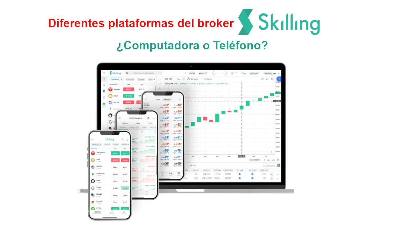 Diferentes plataformas del broker Skilling: ¿Computadora o Teléfono?